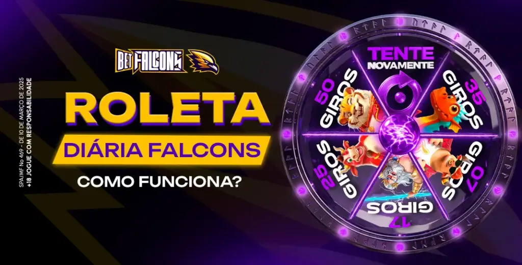 A Roleta Diária Falcons foi criada para premiar jogadores ativos com recompensas diárias, de acordo com o seu nível na plataforma.